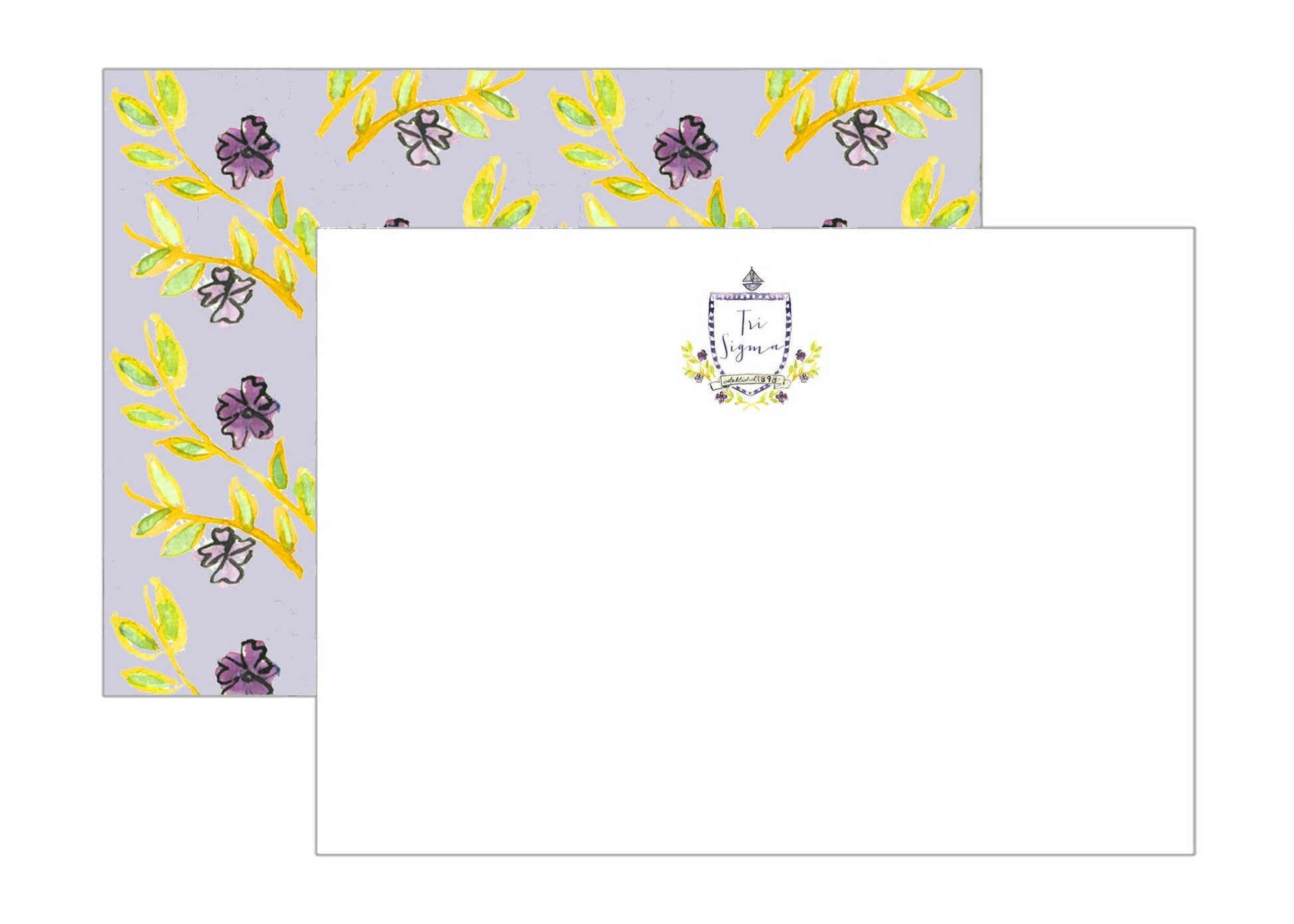 The absolute cutest stationery for the new pledge, active member, or alumni. Flat notecards feature a hand-drawn watercolor motif design that incorporates sorority symbols and mascots in sorority colors on the back of the notecard.